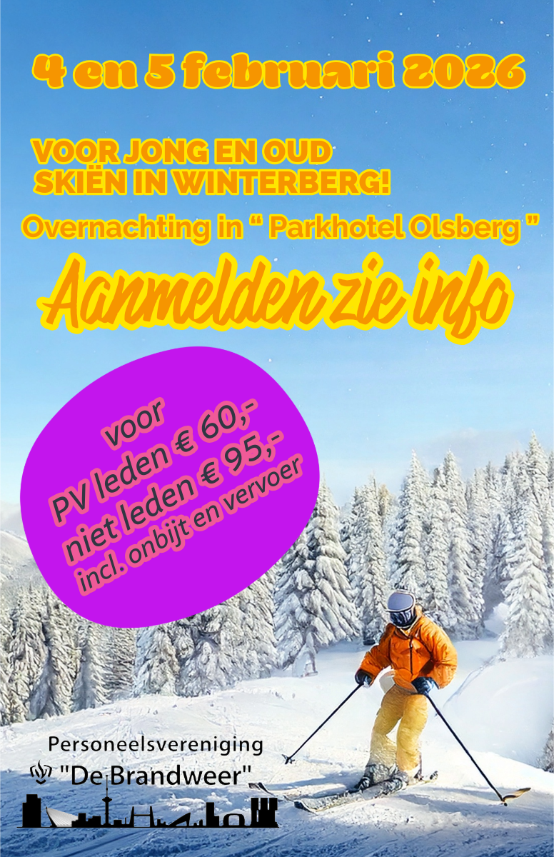 Op Woensdag 4 & Donderdag 5 Februari 2026Organiseert PV “De Brandweer” wederom de wereld dagenWinterberg voor de skiër en snowboarder.Overnachting in “Parkhotel Olsberg”Prijs voor PV-lid € 60, – en voor niet leden € 95.- inclusief ontbijt+vervoer.EXCLUSIEF: skipas, huur materiaal en maaltijden.